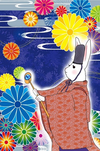 水干を着て烏帽子をつけたウサギは、絵草子に出てきそうな出で立ちで、実に可愛らしい。