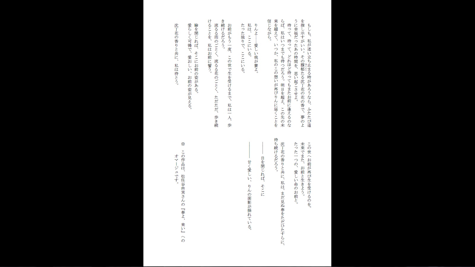 2014年、嘉月さま主催で編纂された殺りんアンソロジー『時めぐり』に寄稿させていただきました。